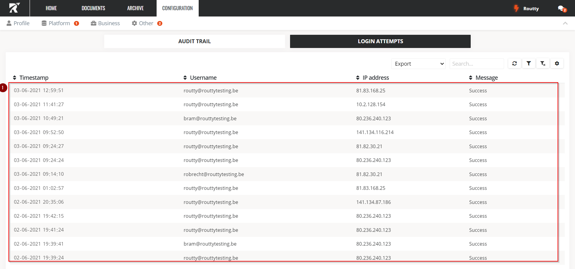 LOGIN ATTEMPTS Show all login attempts to the portal, both successful and unsuccessful