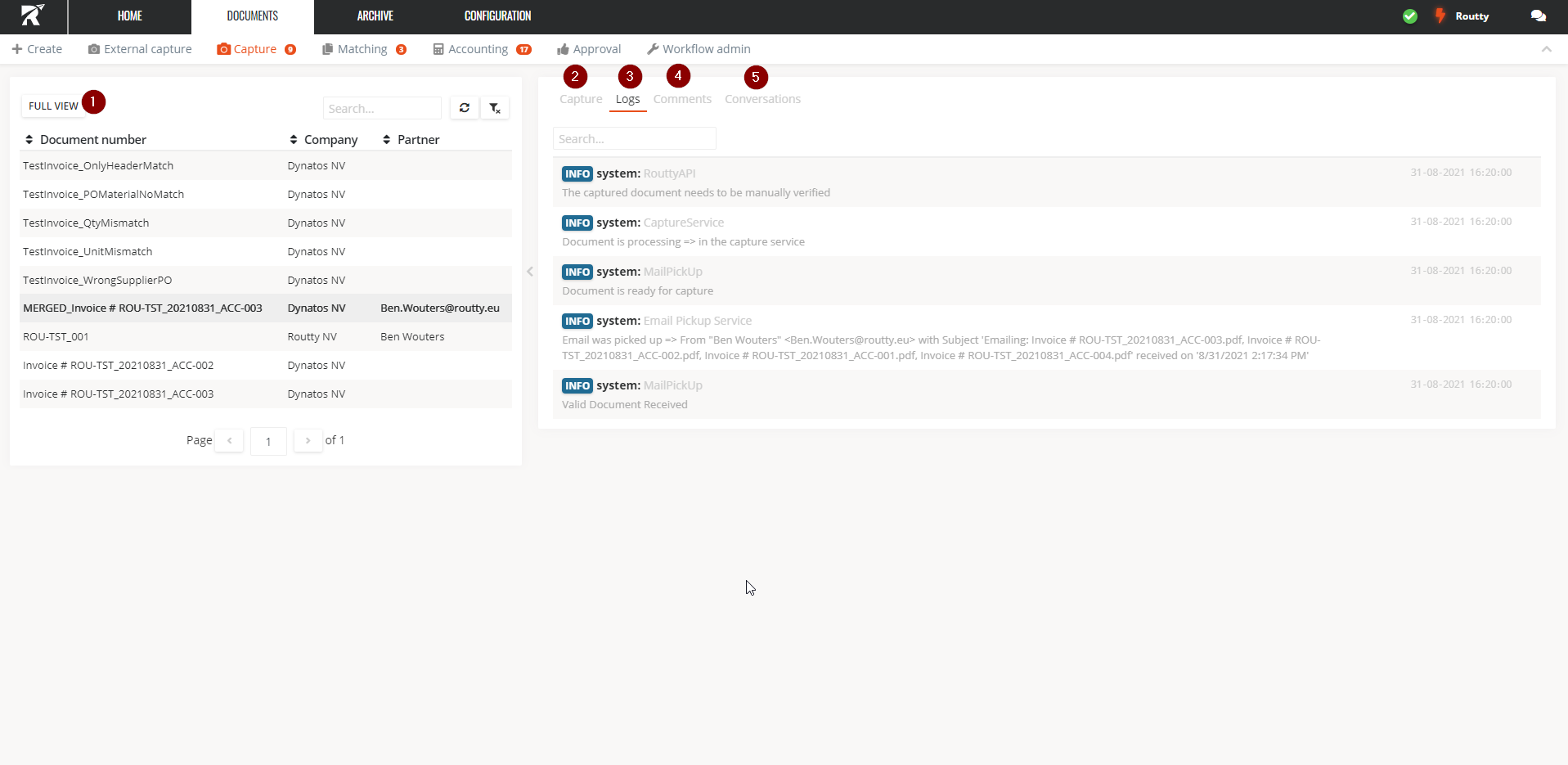 The LOGS tab displays all audits for this document, the same audits are also present in the Monitoring screen