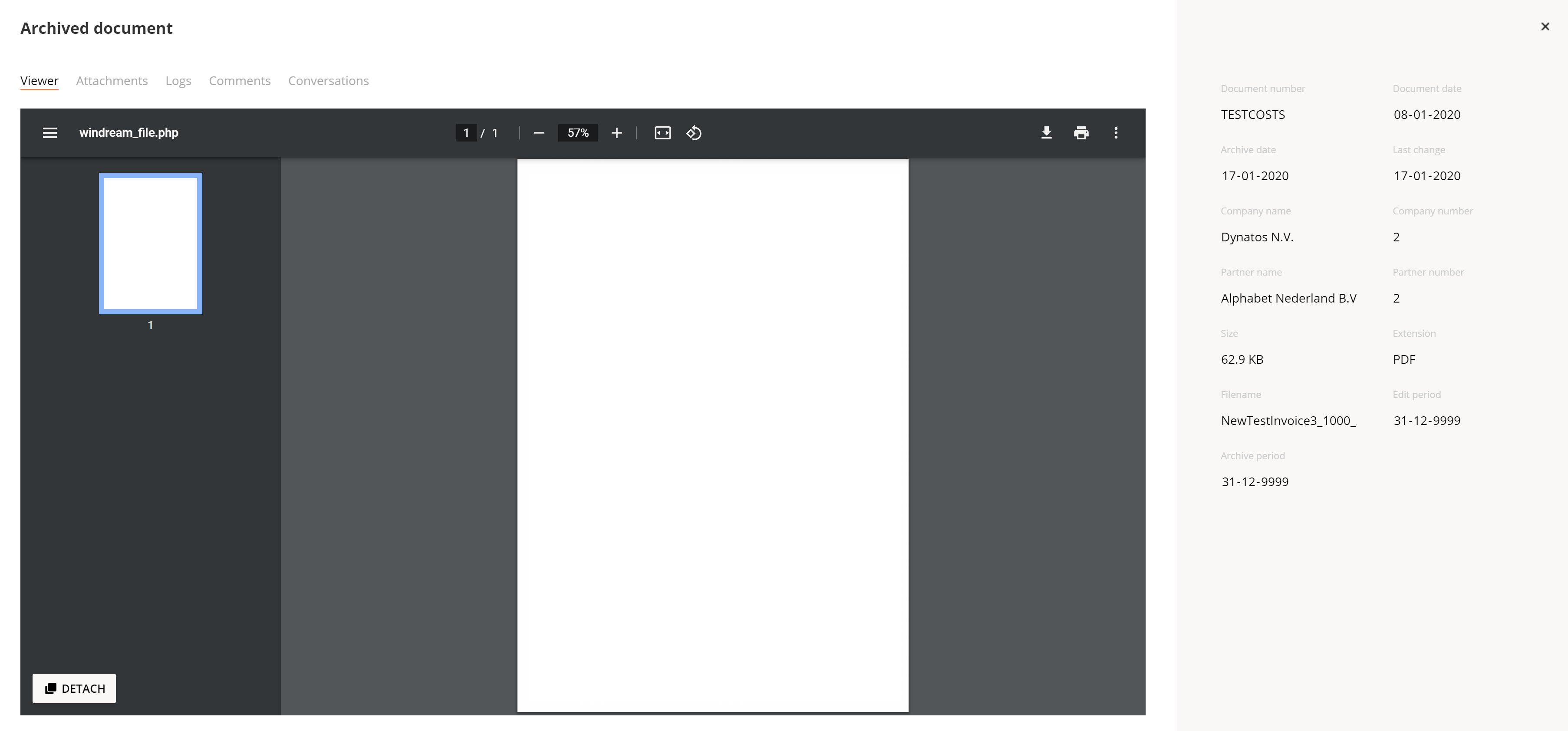 In this screen you can look at the PDF, browse the document’s logs, comments, conversations, and consult any other attachments related to the document itself.