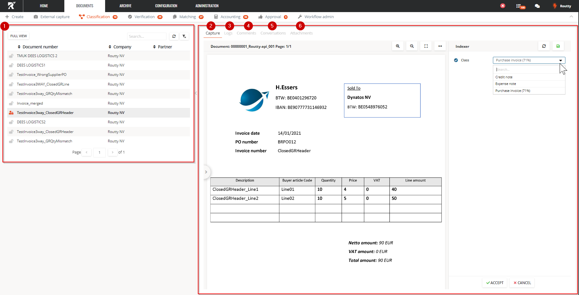 Overview area of all documents in the ‘Classification’ step that are assigned to you to determine the document type.