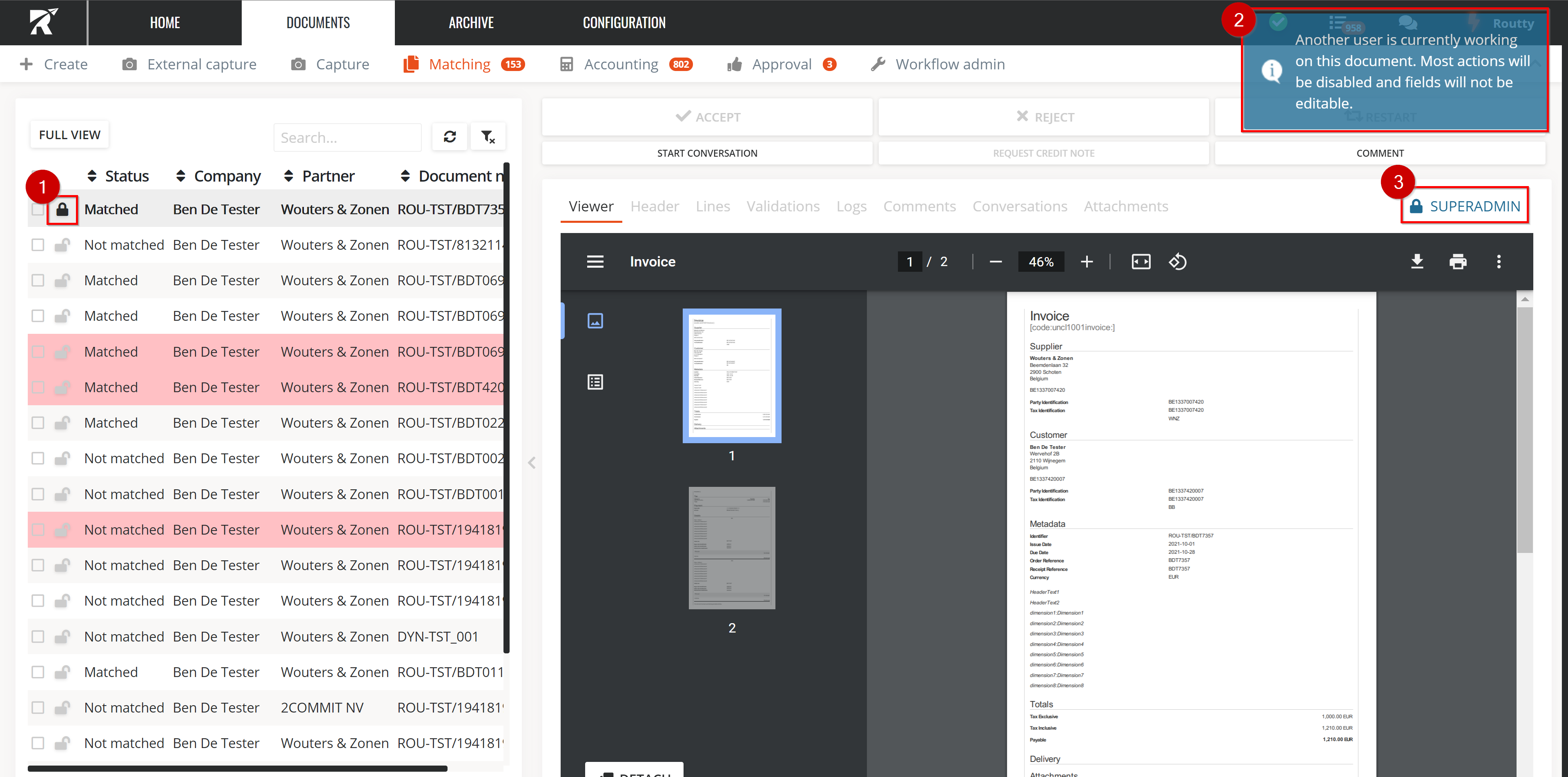 When opening a document, this document is locked for other users. This means that other users can not edit the document you are editing. All the input fields and buttons in a locked document will be disabled except for conversations and comments.