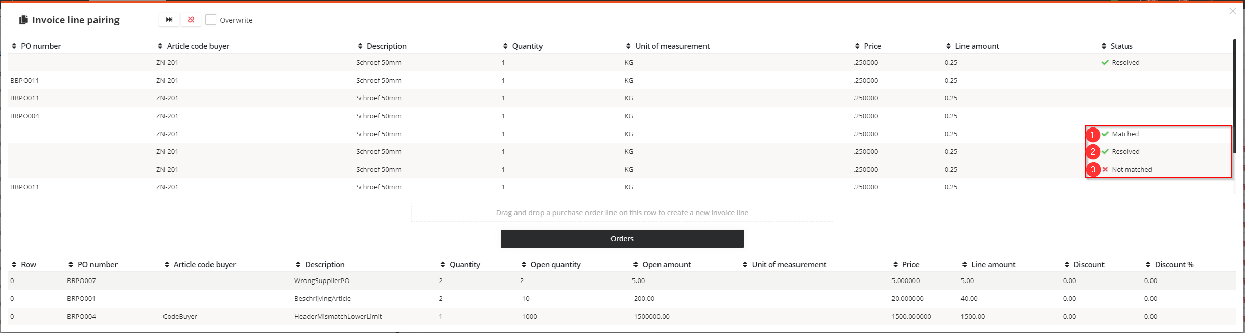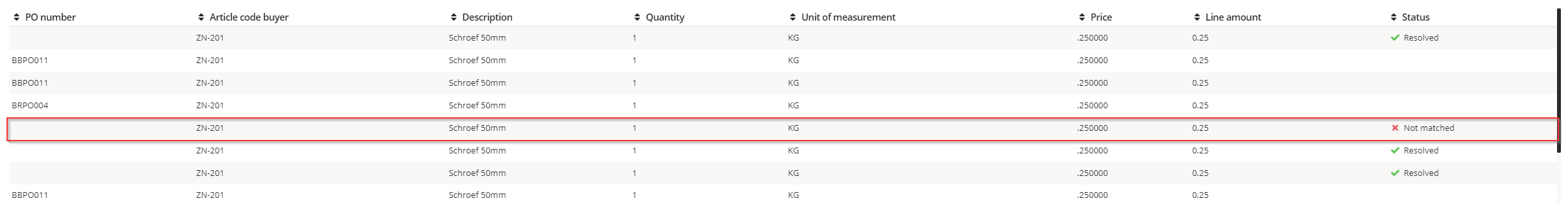 When Routty matches an invoice line and an order/receipt line, and an exception occurs during that match (price exception type, quantity exception type…), the exception is logged and can be seen when clicking on a line in the matching modal.
